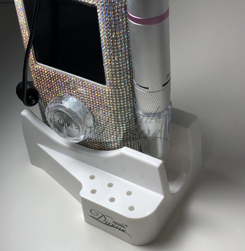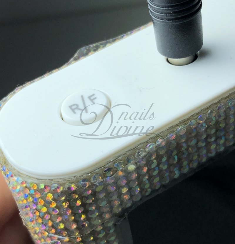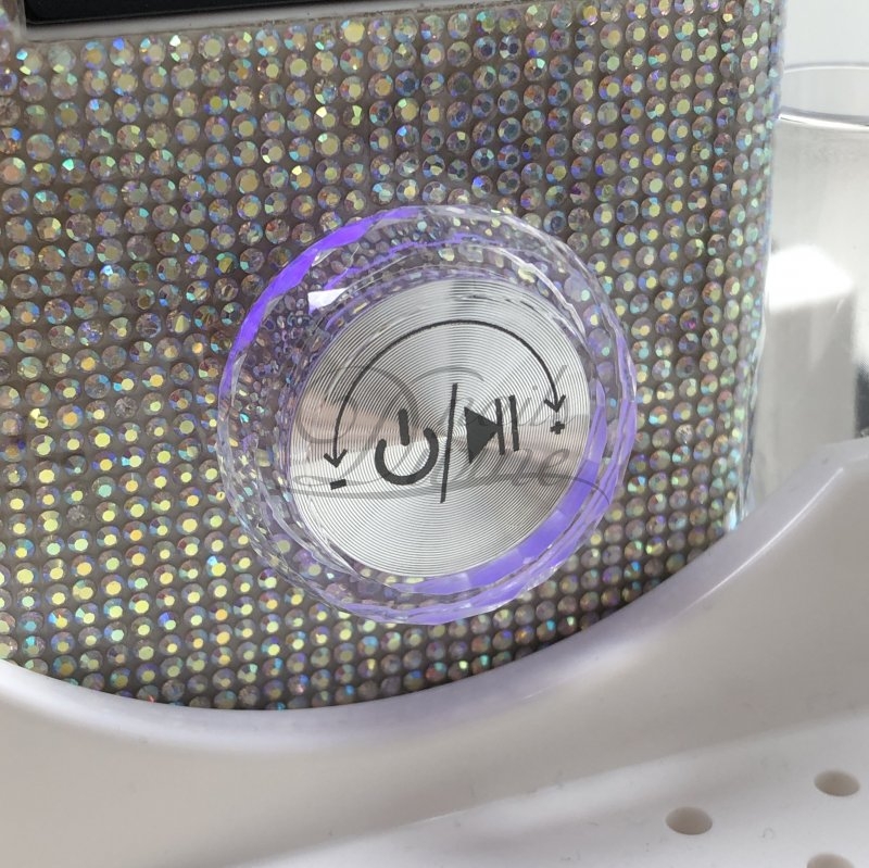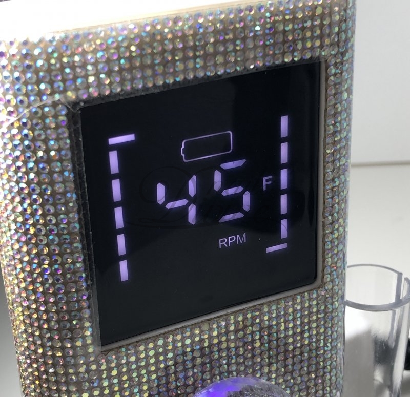 Lima elétrica deslumbrante com pequenos diamantes em toda a máquina e um botão prático e em formato de cristal.