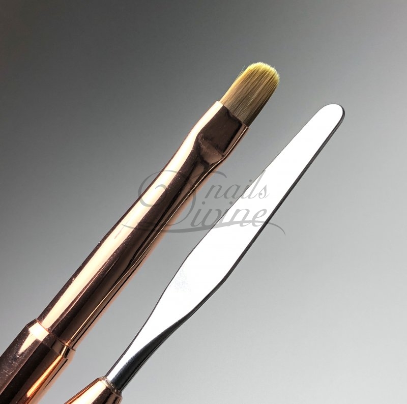 Pincel exclusivo nails Divine, com cabo original com glitter e respetivo nome do pincel e da espátula para que seja mais fácil na hora de procurar.